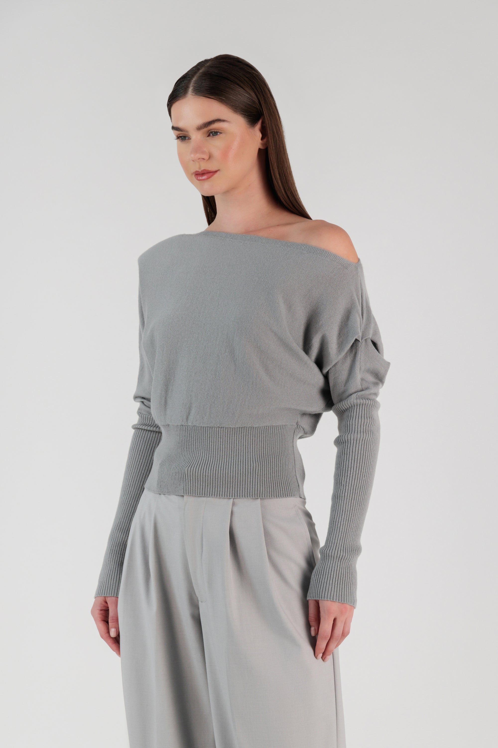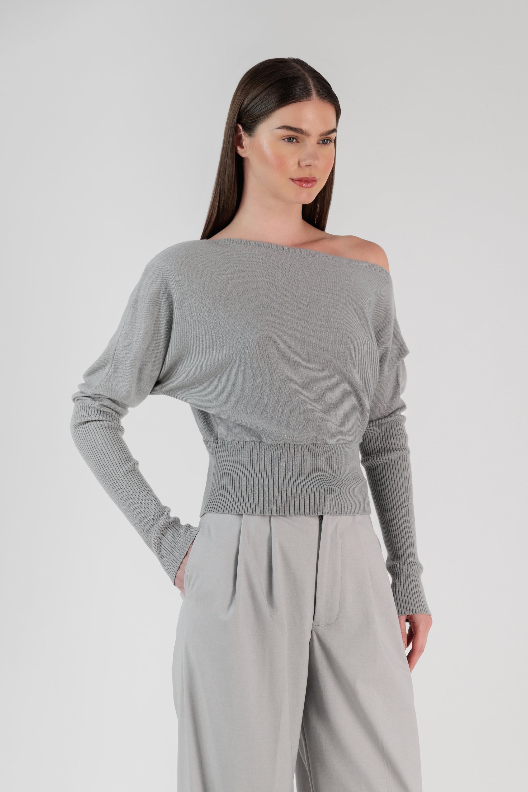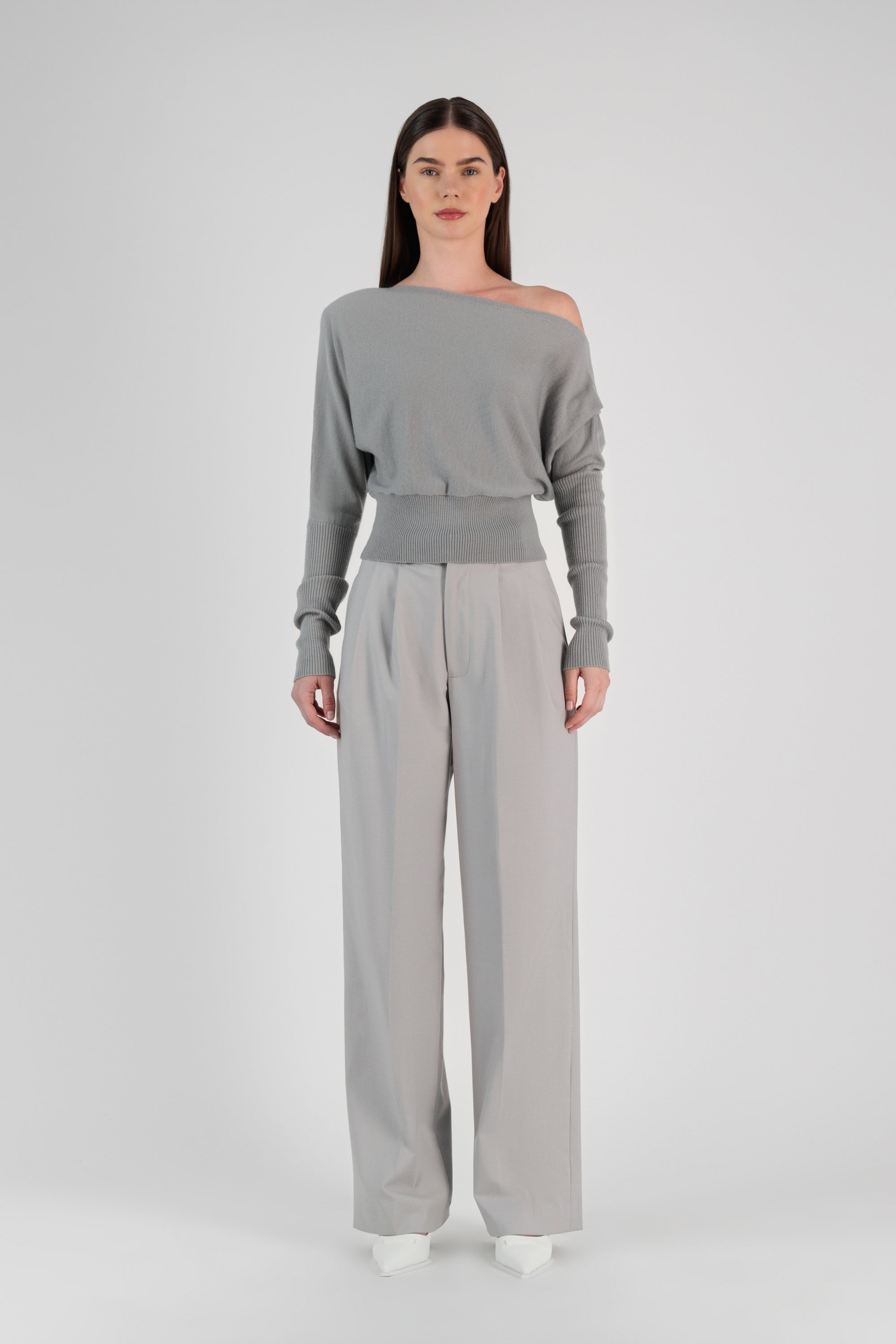 ASYMMETRIC PLEATED SKIRT W/ VEGAN LEATHER WAIST