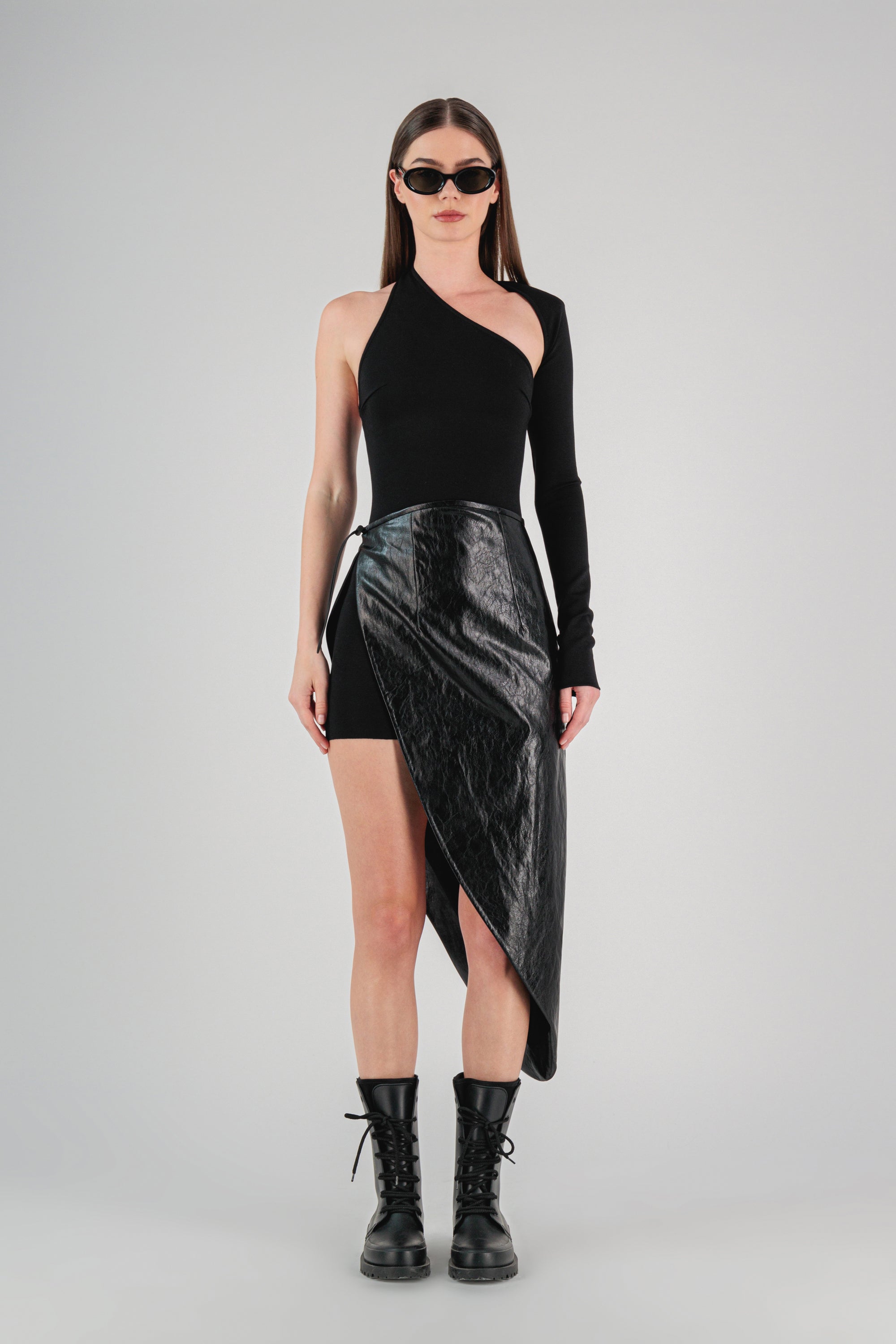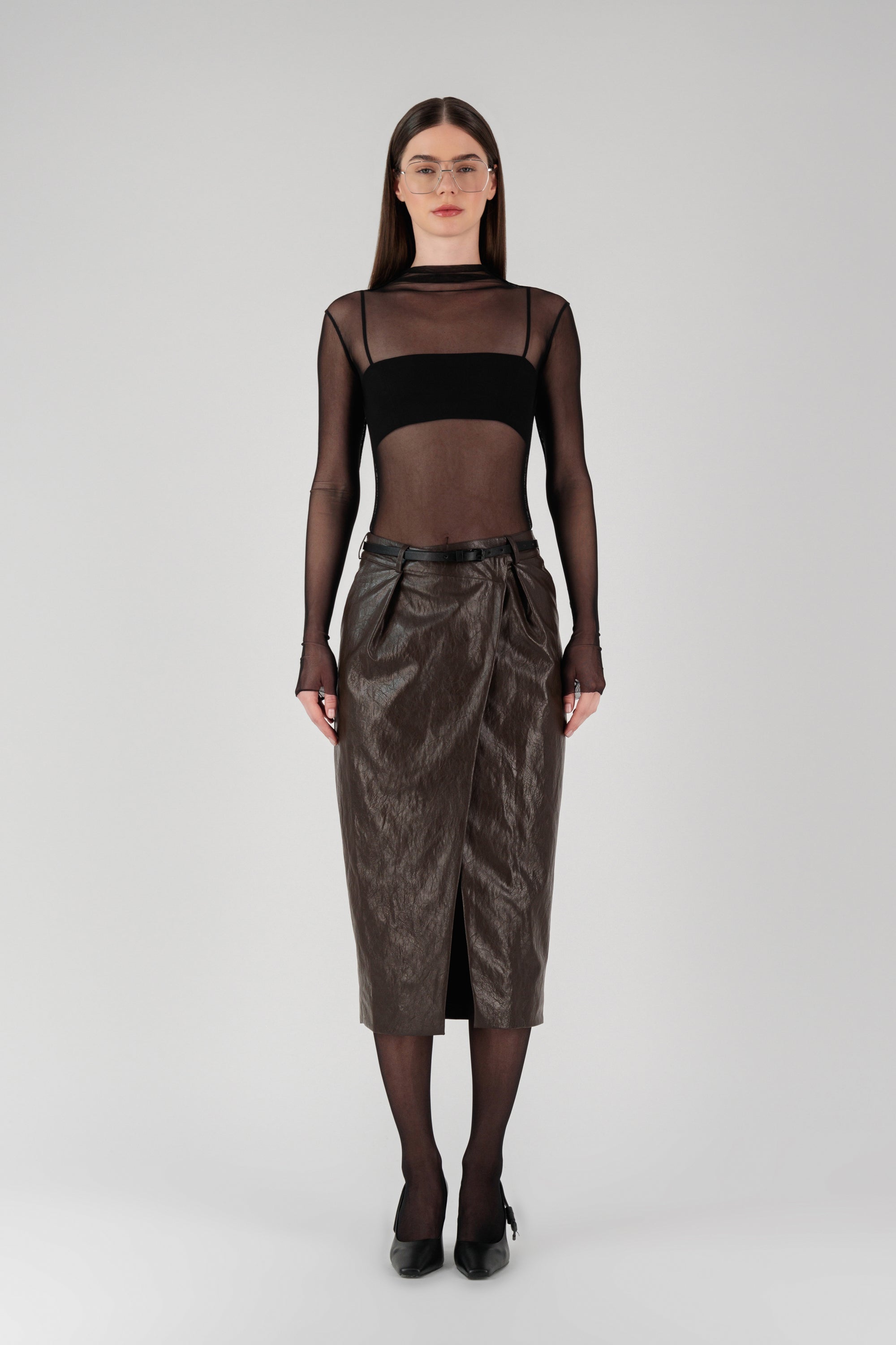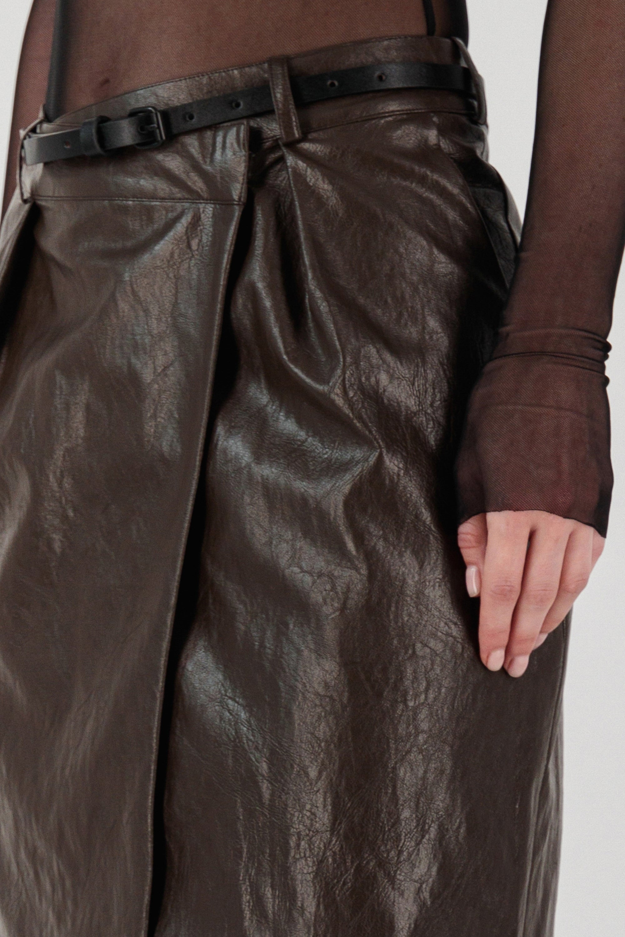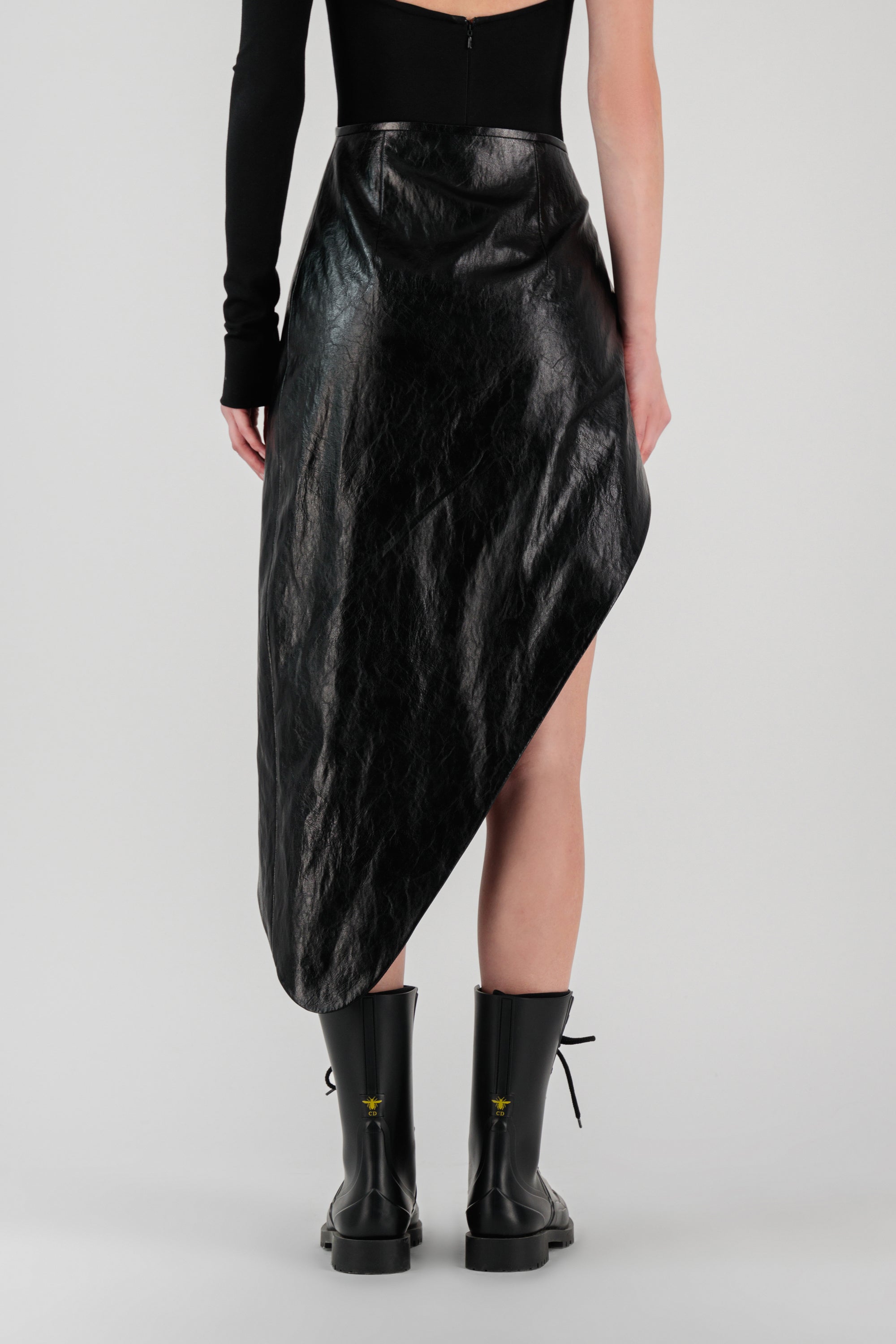 VEGAN LEATHER TWO SIDES SLIT MIDI SKIRT