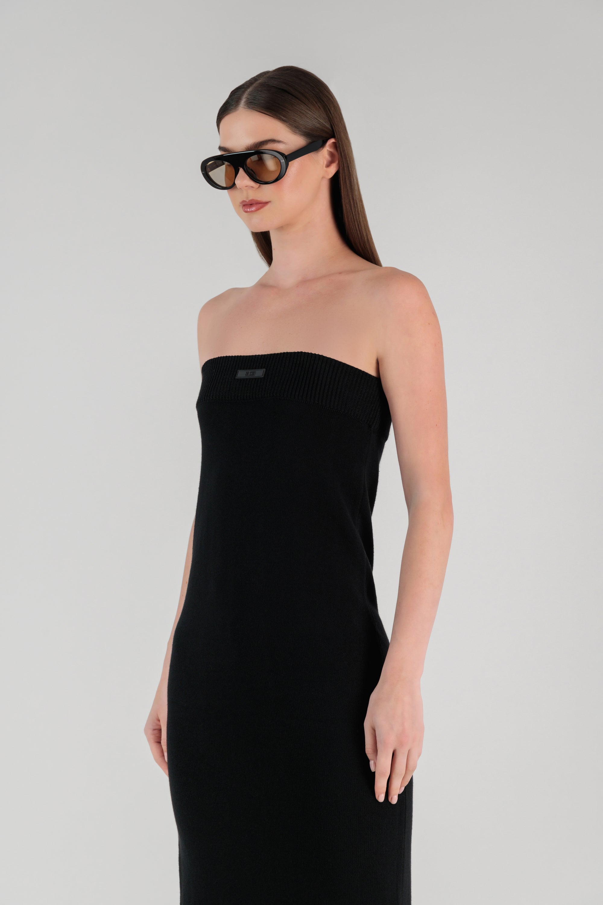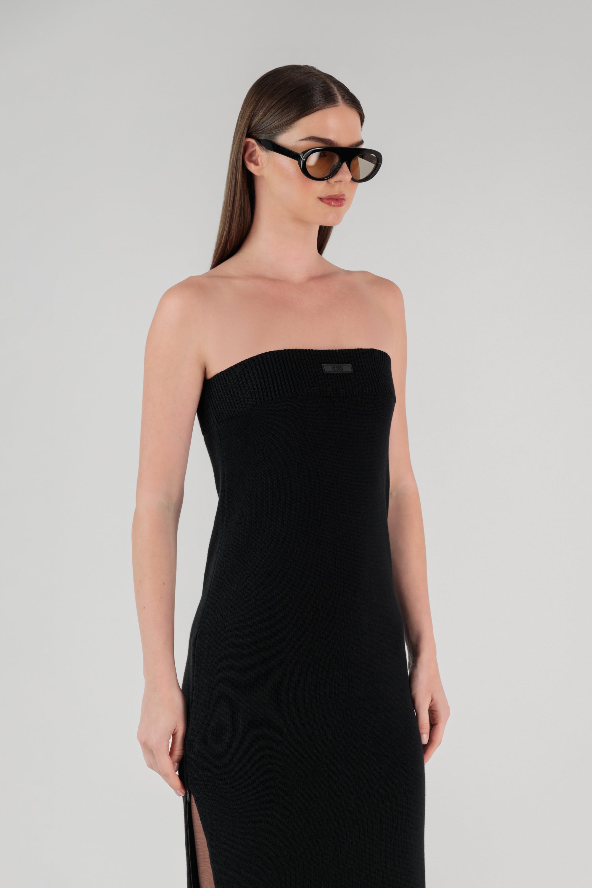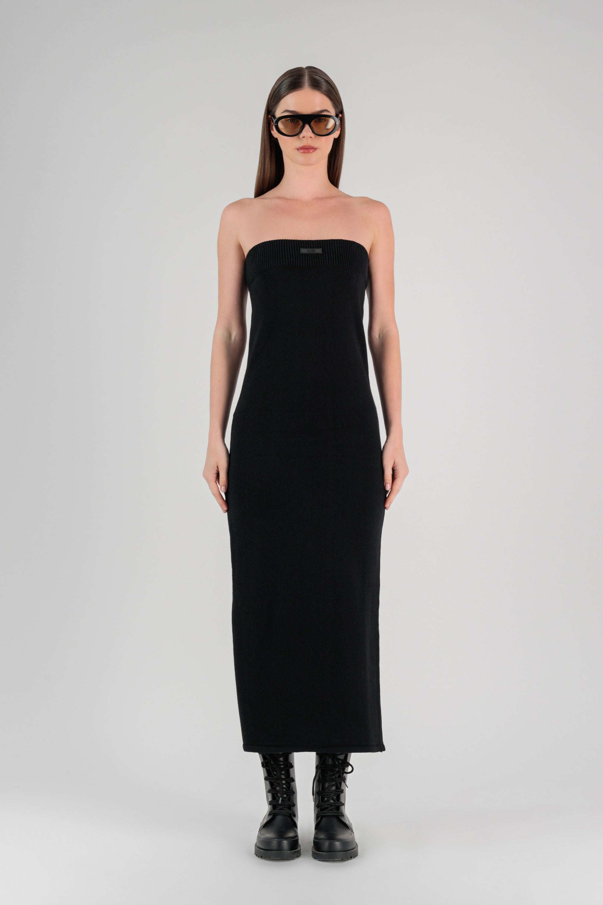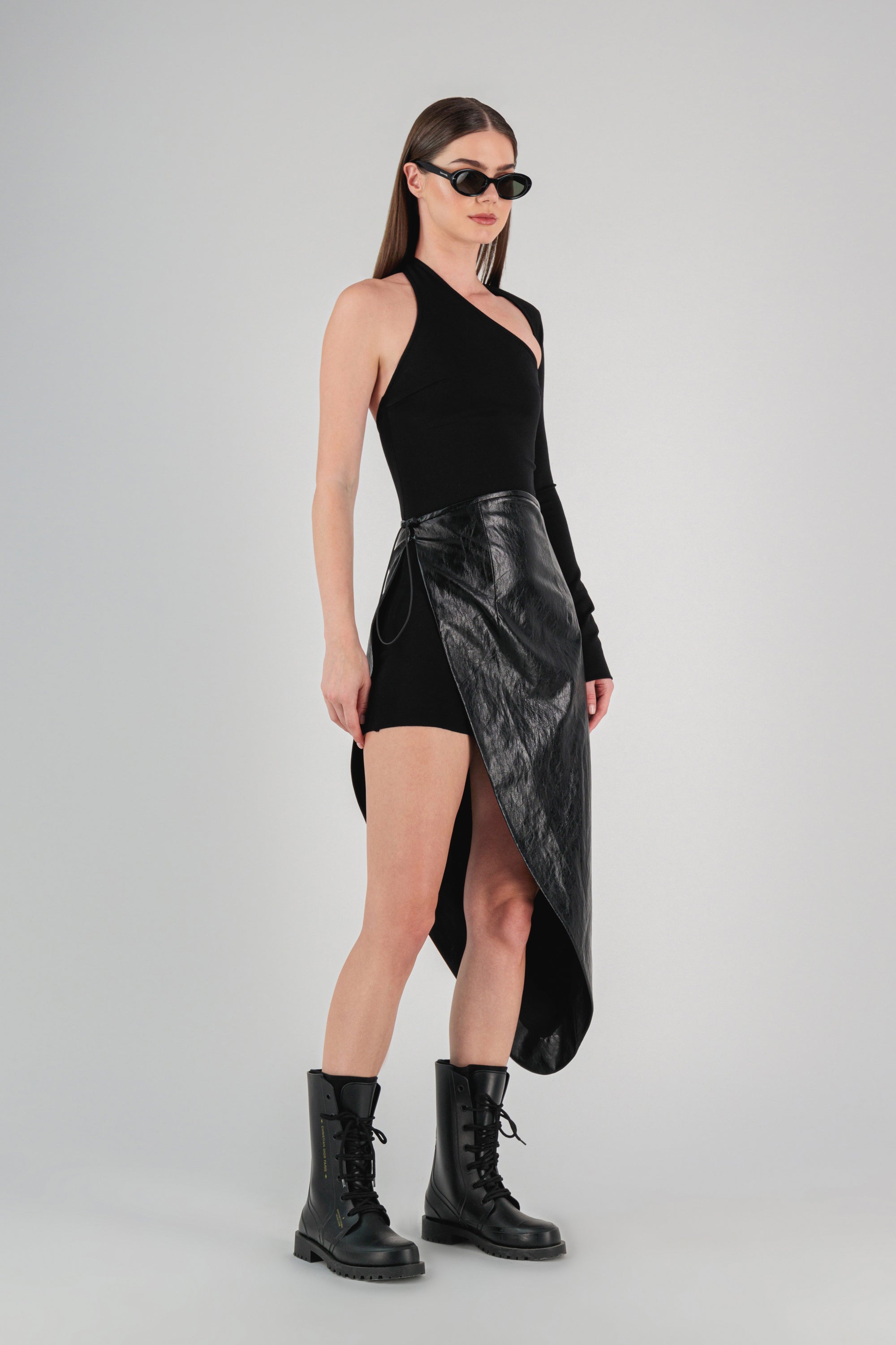 VEGAN LEATHER TWO SIDES SLIT MIDI SKIRT