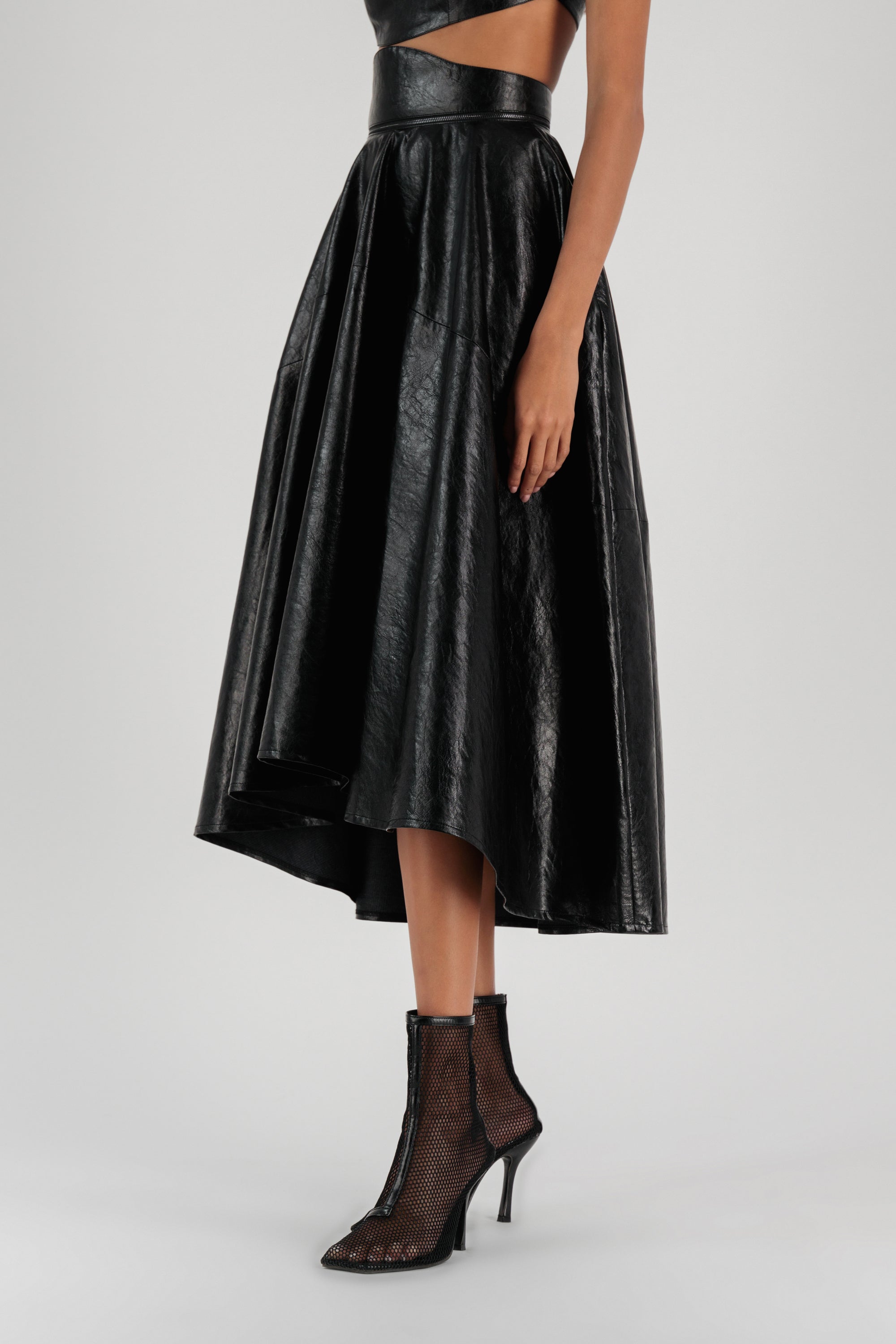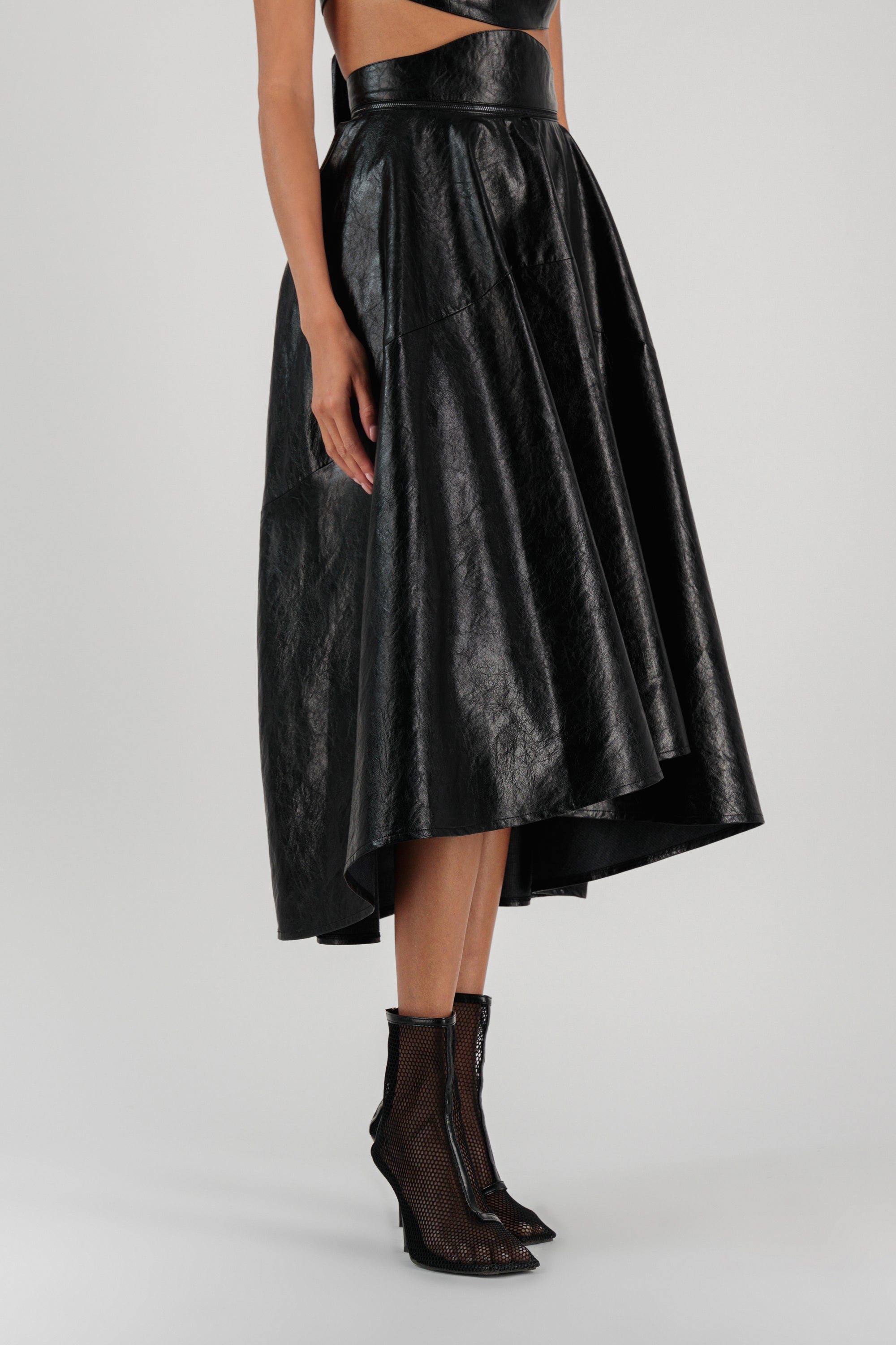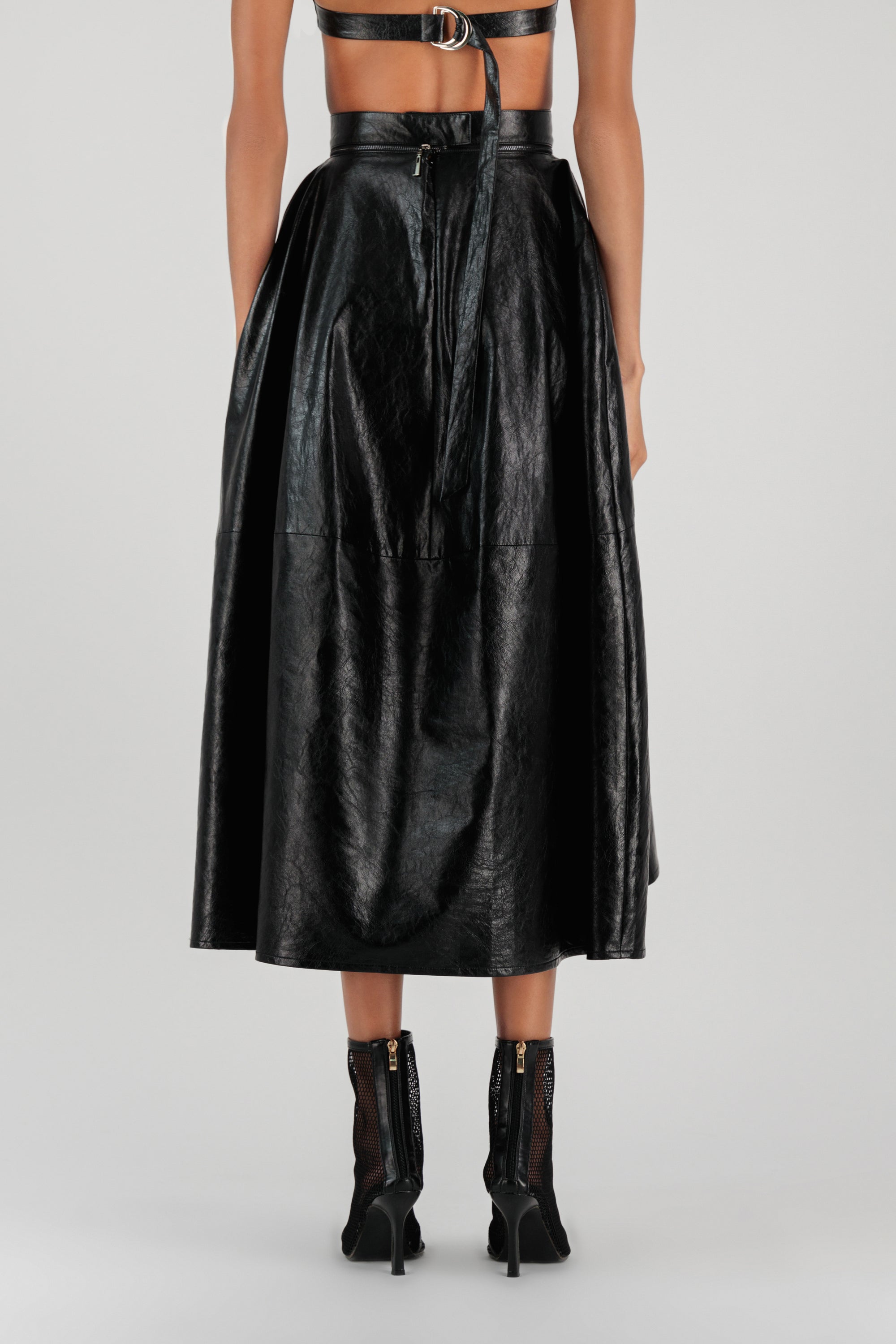 VEGAN LEATHER WAIST ZIP MIDI BALLOON SKIRT