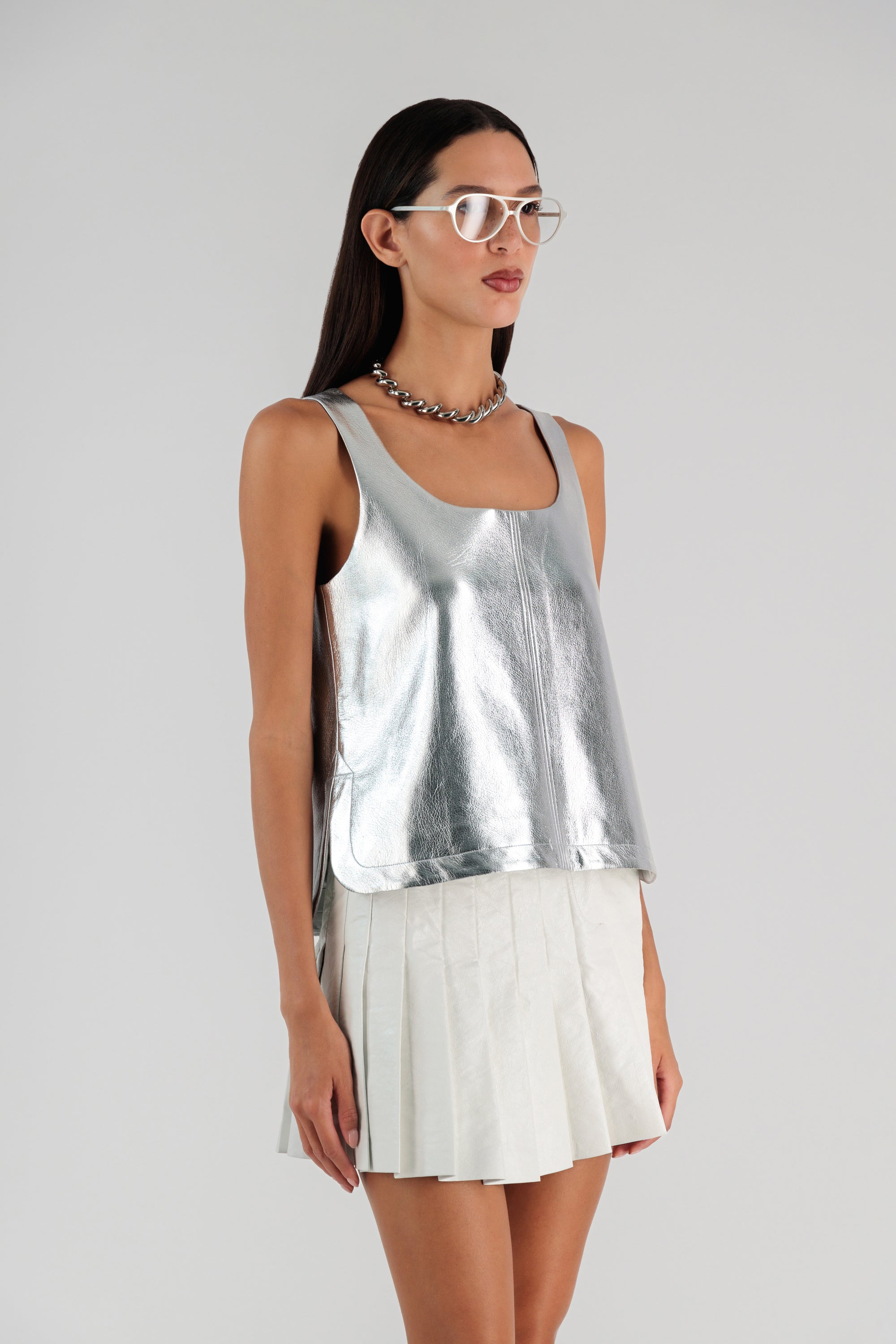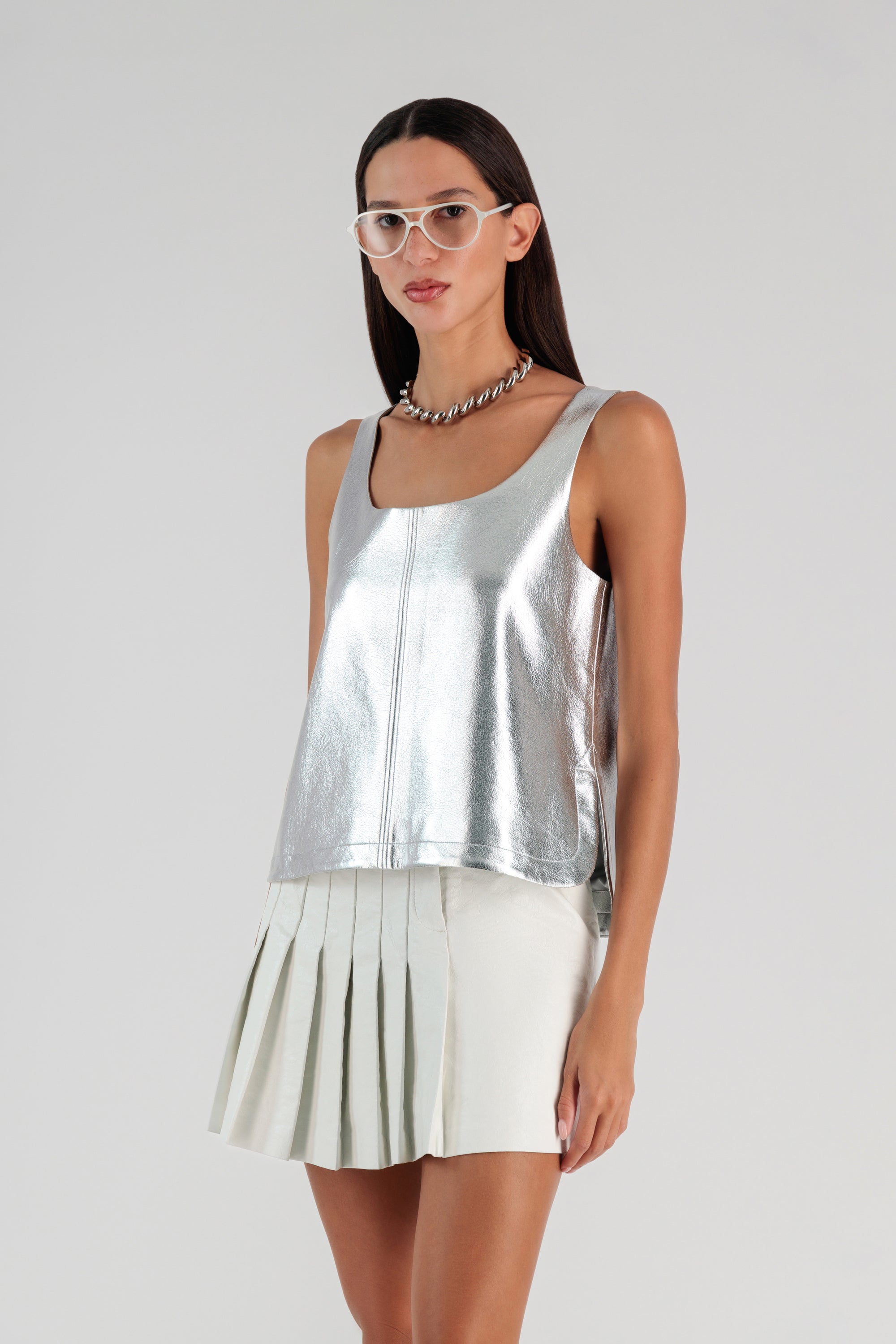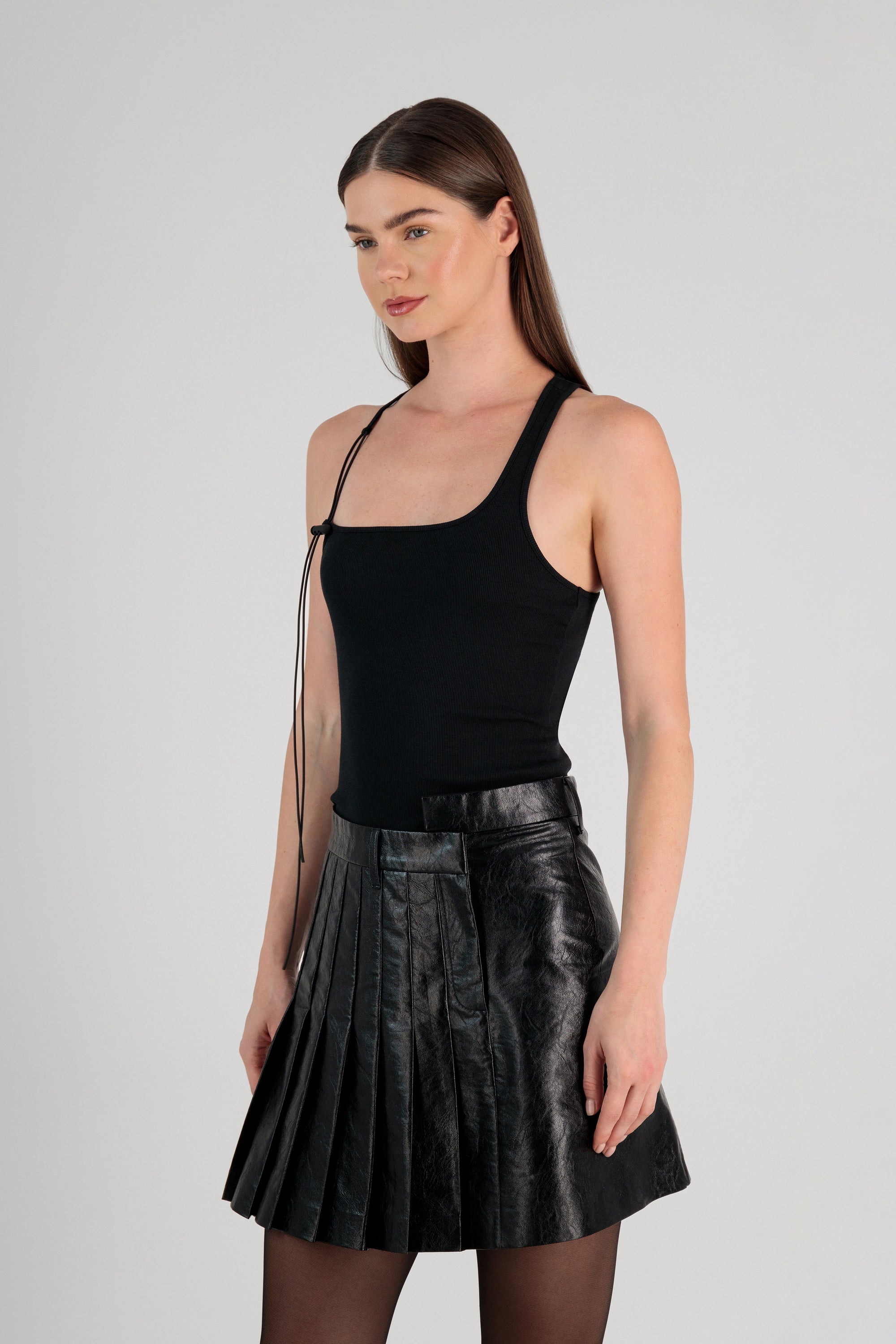 VEGAN LEATHER SEQUIN MINI SKIRT